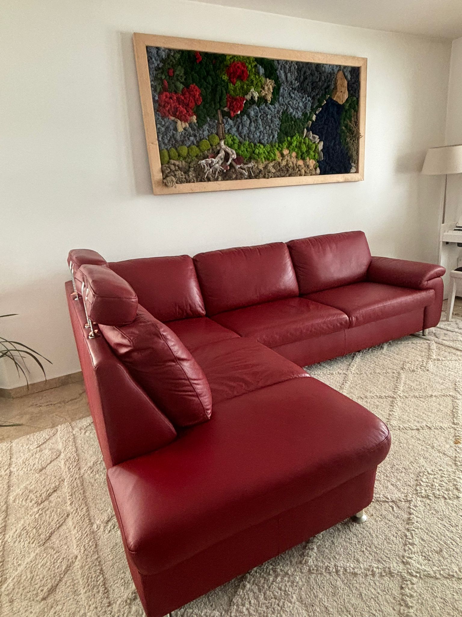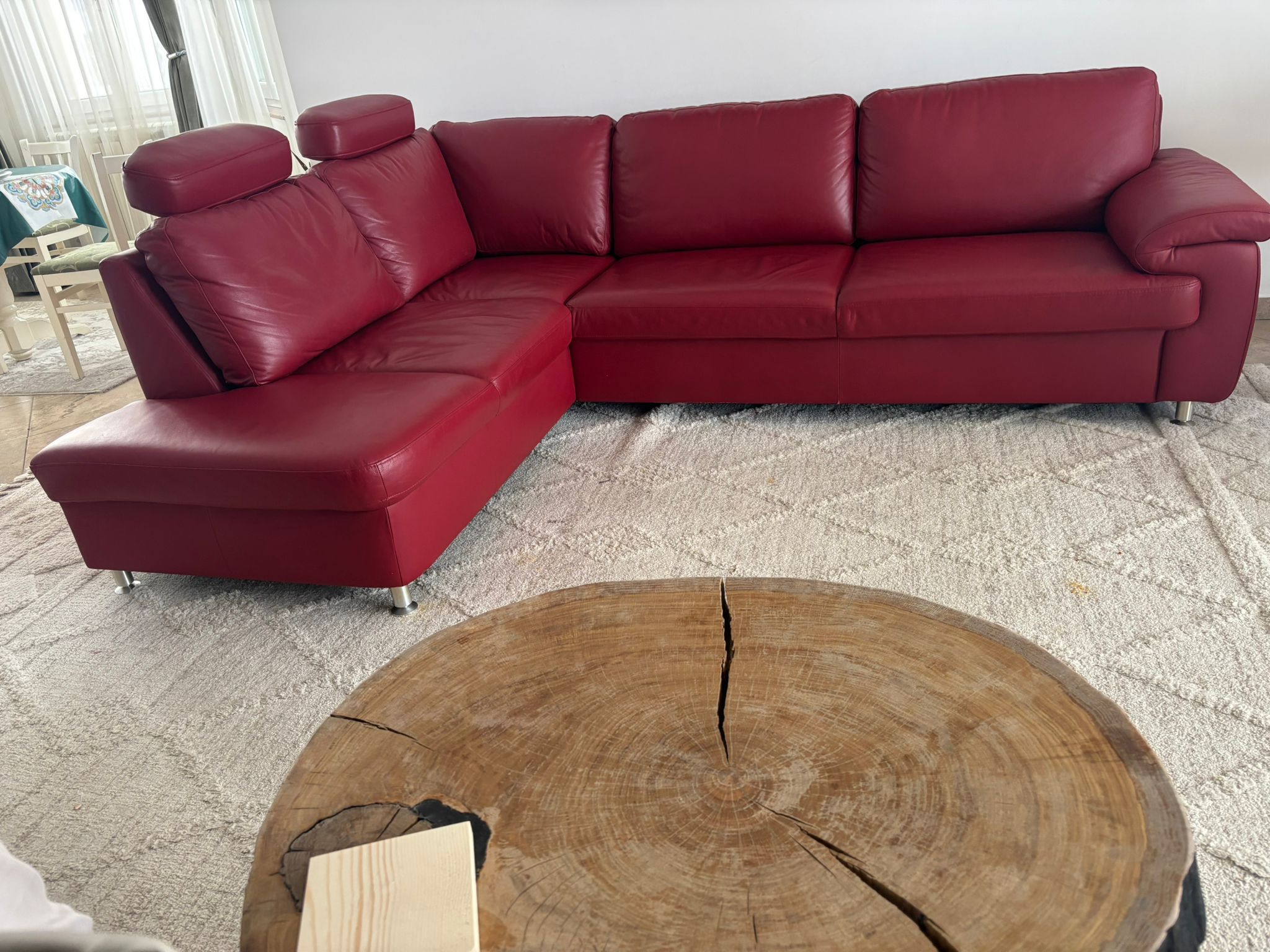 Adaugă personalitate și eleganță livingului tău cu acest colțar spectaculos, realizat din piele naturală de calitate premium. Nuanța intensă de roșu transformă orice spațiu într-un ambient sofisticat, modern și plin de energie, fiind alegerea ideală pentru interioare contemporane sau pentru accente îndrăznețe într-un decor clasic.